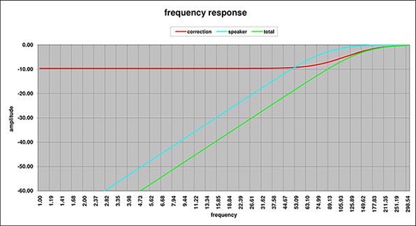 The eq correction curve is in effect a Linkwitz Transform and this curve is shown below. Final combined response of the whole stack can be measured and corrected as desired.
